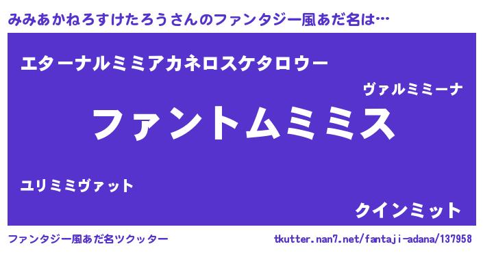 | ポケモン風あだ名 | 『ヒミミアカネロスケタロウ』『ミーミイ』 |