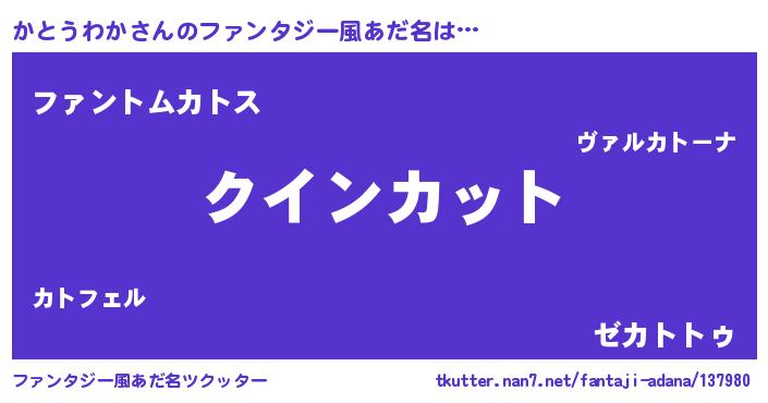 | ヒーロー風カッコイイあだ名 | 『慈愛の使者かとうわか』『銀牙騎士カト』 |