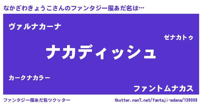 | 意味不明あだ名 | 『永久保存なかざわきょうこ』 |