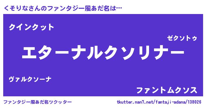 | 伝説のあだ名 | 『秘められし忍者くそりな』 |