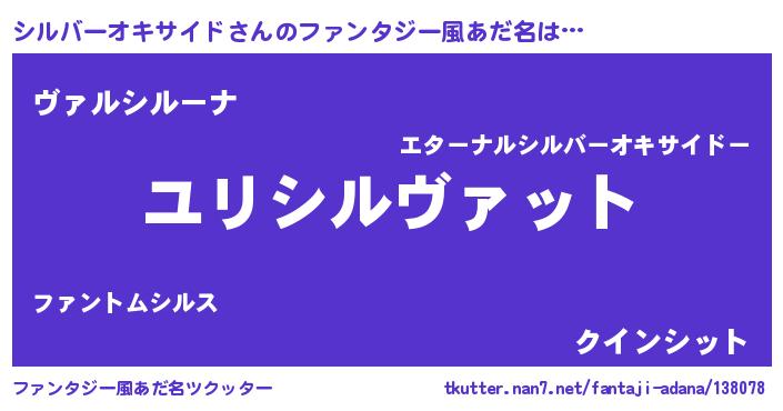 | 男性向けラノベタイトル風あだ名 | 『シルバーオキサイドスレイヤー』 |