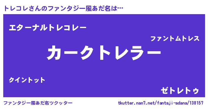 | 意味不明あだ名 | 『トレコレフォーエバー』『自称トレコレ』 |