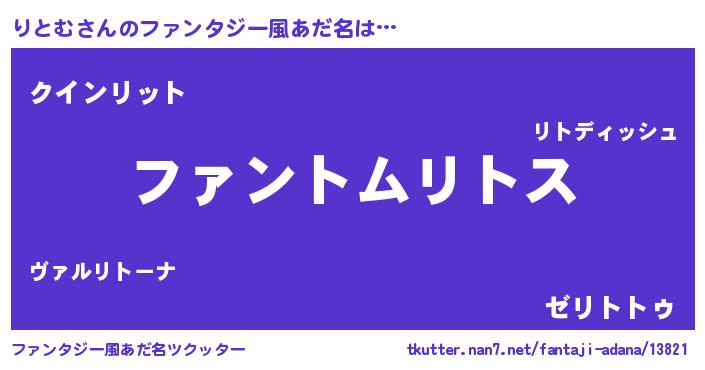 | ヒーロー風カッコイイあだ名 | 『幻影騎士リト』『天空の使者りとむ』 |