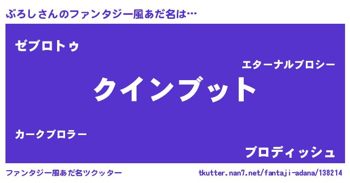 | 女子向けラノベタイトル風あだ名 | 『ぶろし夫妻のなれそめ』『闇のぶろし』 |