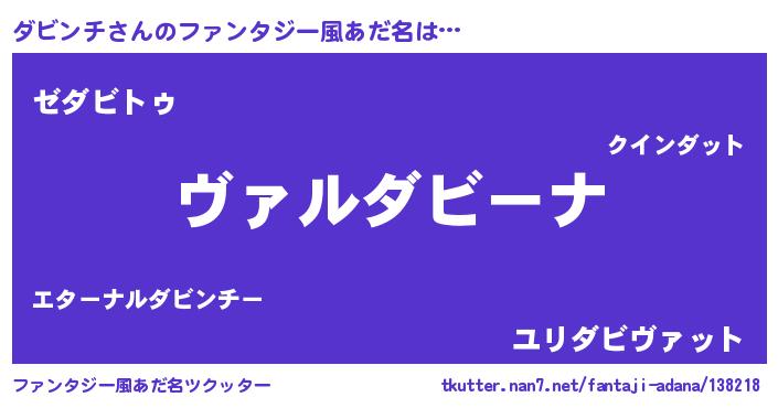 | 女子向けラノベタイトル風あだ名 | 『乙女ゲームの破滅フラグしかない悪役ダビンチに転生してしまった…』 |