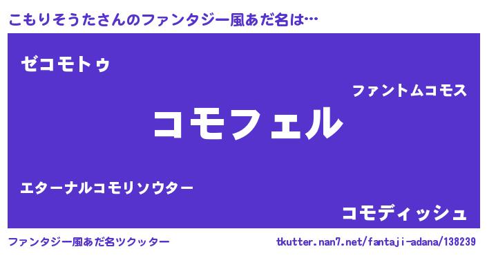 | 男性向けラノベタイトル風あだ名 | 『コモリソウタアートオンライン』 |