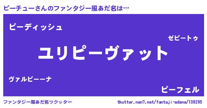| ヘコむあだ名 | 『ピーチュー(震え声)』『ピーにー』 |