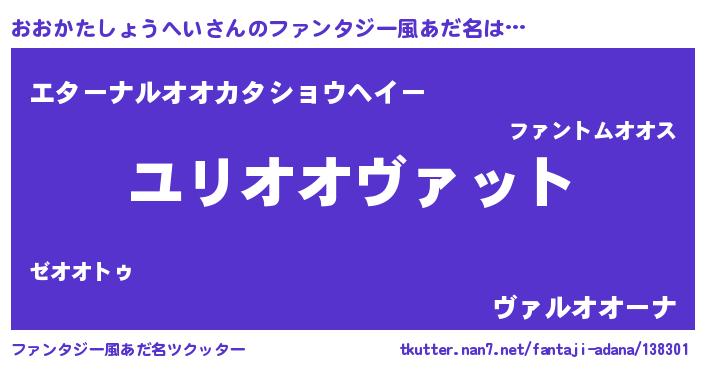| 女子向けラノベタイトル風あだ名 | 『おおかたしょうへいの玉の輿計画!』 |