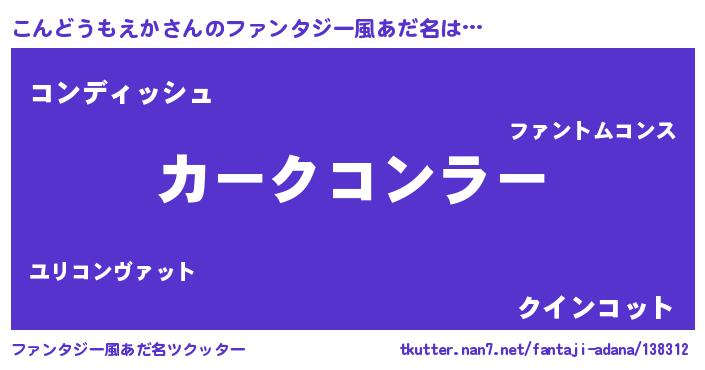 | 胡散臭い通販商品みたいなあだ名 | 『絶対に幸福をもたらす水素水…その名も「こんどうもえか」』 |