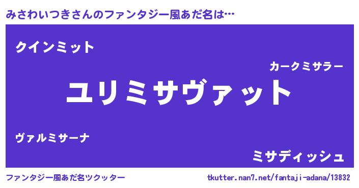 | 女子向けラノベタイトル風あだ名 | 『みさわいつきの玉の輿計画!』 |