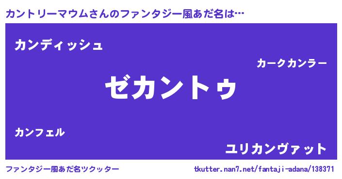 | 女子向けラノベタイトル風あだ名 | 『カントリーマウムアンティーク』 |