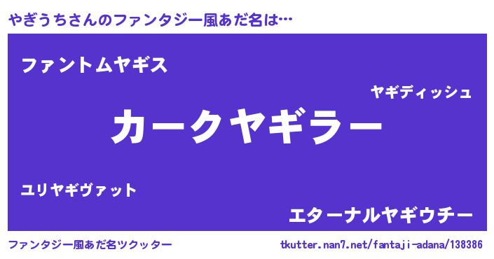 | 意味不明あだ名 | 『とにかく怪しいやぎうち』 |