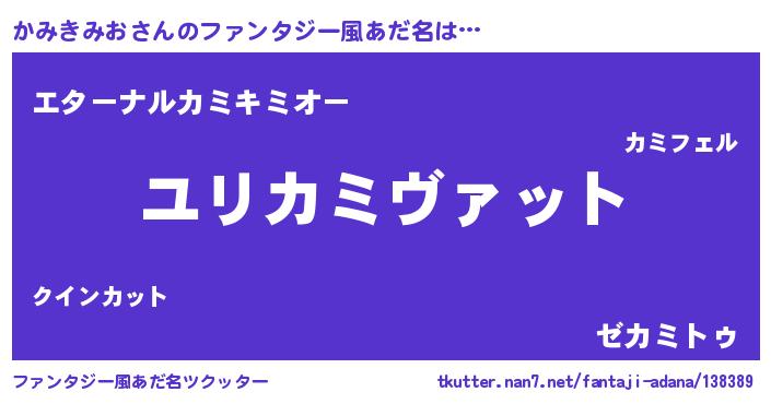 | 男性向けラノベタイトル風あだ名 | 『かみきみお~年齢イコール彼女いない歴の魔法使い~』 |