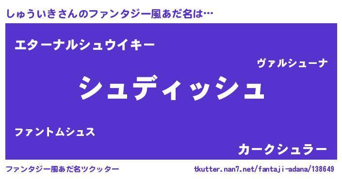 | ヒーロー風カッコイイあだ名 | 『ネオシュウイキ』『仮面シュダー』 |