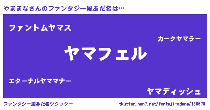 | ヒーロー風カッコイイあだ名 | 『スーパーヤママナ』『天弓騎士ヤマ』 |