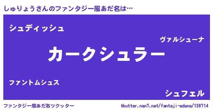 | 男性向けラノベタイトル風あだ名 | 『緋弾のシュリョウ』『しゅりょうの憂鬱』 |