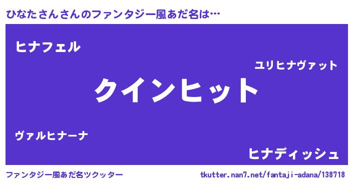 | ヒーロー風カッコイイあだ名 | 『慈愛の使者ひなたさん』『仮面ヒナダー』 |