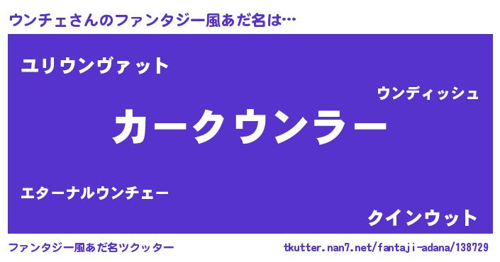 | ヒーロー風カッコイイあだ名 | 『慈愛の使者ウンチェ』『ネオウンチェ』 |
