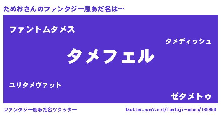 | ポケモン風あだ名 | 『タメチュウ』『ヒタメオ』 |