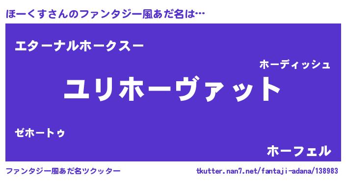 | 肩書あだ名 | 『ほーくす上級大将』『ほーくす総理大臣』 |