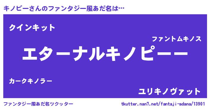 | 女子向けラノベタイトル風あだ名 | 『キノピーの雑貨屋さん』 |