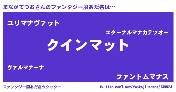 | 男性向けラノベタイトル風あだ名 | 『ノーゲーム・ノーマナカテツオ』 |