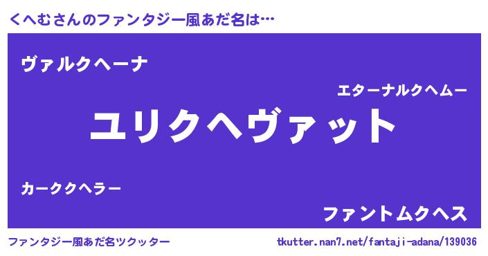 | 意味不明あだ名 | 『もやし科くへむ属』『自称くへむ』 |