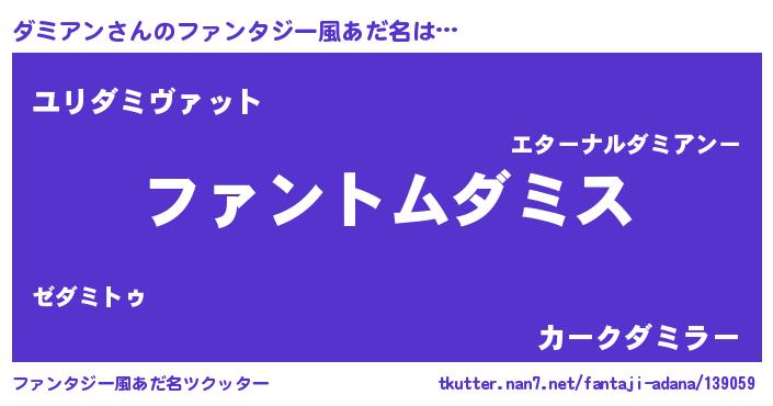 | 男性向けラノベタイトル風あだ名 | 『ダンジョンにダミアンを求めるのは間違っているだろうか』 |