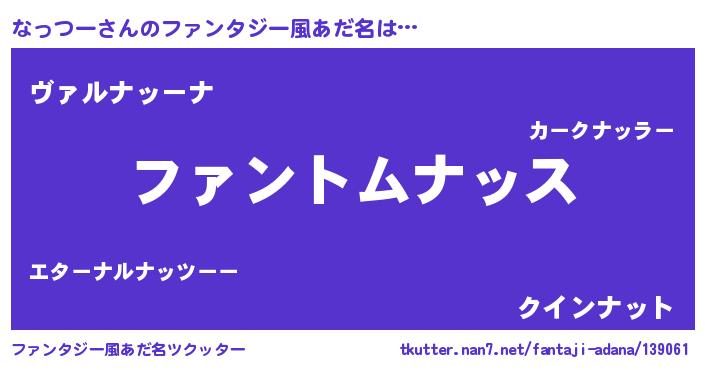 | 女子向けラノベタイトル風あだ名 | 『なっつーは平凡を望む』 |