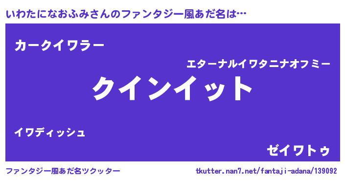 | 男性向けラノベタイトル風あだ名 | 『おまえをオタクにしてやるから、俺をいわたになおふみにしてくれ! 』 |