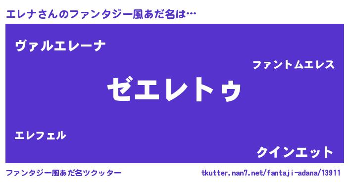 | 男性向けラノベタイトル風あだ名 | 『エレナに滅ぼされるだけの簡単なお仕事です』 |
