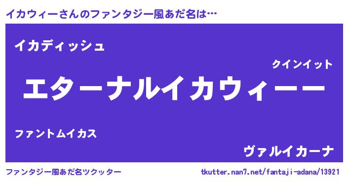| 意味不明あだ名 | 『イカウィーフォーエバー』 |