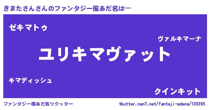 | 男性向けラノベタイトル風あだ名 | 『きまたさん~年齢イコール彼女いない歴の魔法使い~』 |