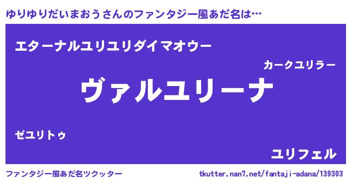 | 意味不明あだ名 | 『住所不定無職ゆりゆりだいまおう(68歳)』 |