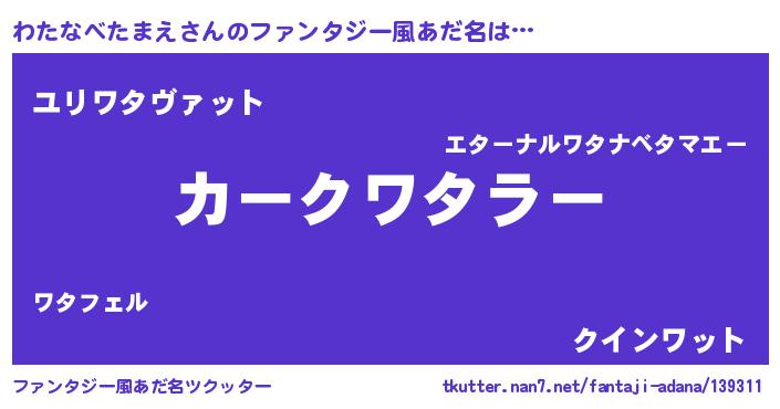 | 欧米人風あだ名 | 『アンジェラ・わたなべたまえ』 |