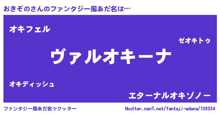 | 男性向けラノベタイトル風あだ名 | 『魔弾の王とおきぞの』 |