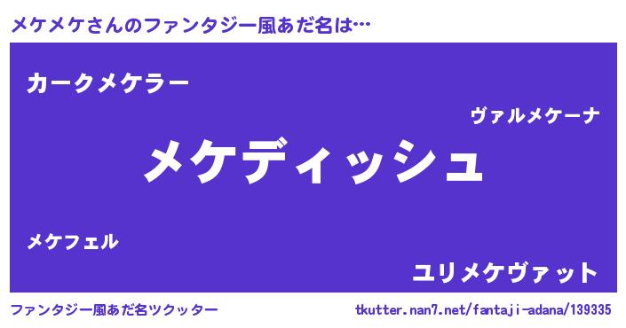 | ヘコむあだ名 | 『メケメケ(遠い目)』『メケにー』 |