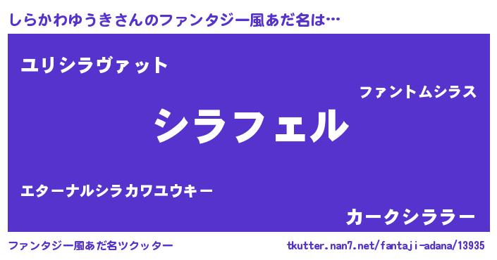 | 胡散臭い通販商品みたいなあだ名 | 『必ず成功する霊験あらたかなお札…その名も「しらかわゆうき」』 |