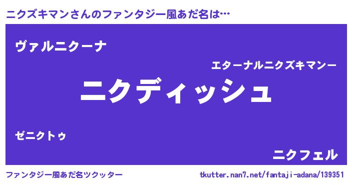 | 意味不明あだ名 | 『永久保存ニクズキマン』 |