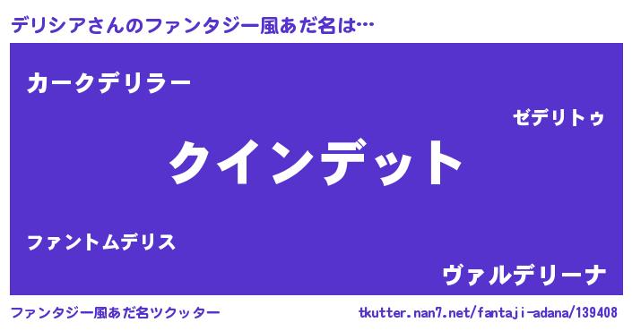 | 女子向けラノベタイトル風あだ名 | 『死神デリシアの再婚』 |