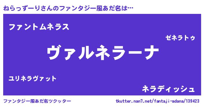 | 意味不明あだ名 | 『住所不定無職ねらっずーり(10歳)』 |