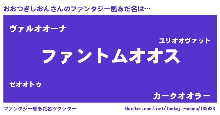 | 男性向けラノベタイトル風あだ名 | 『ダンジョンにおおつきしおんを求めるのは間違っているだろうか』 |