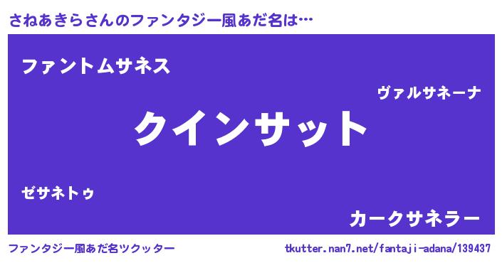 | 男性向けラノベタイトル風あだ名 | 『ノーゲーム・ノーサネアキラ』 |