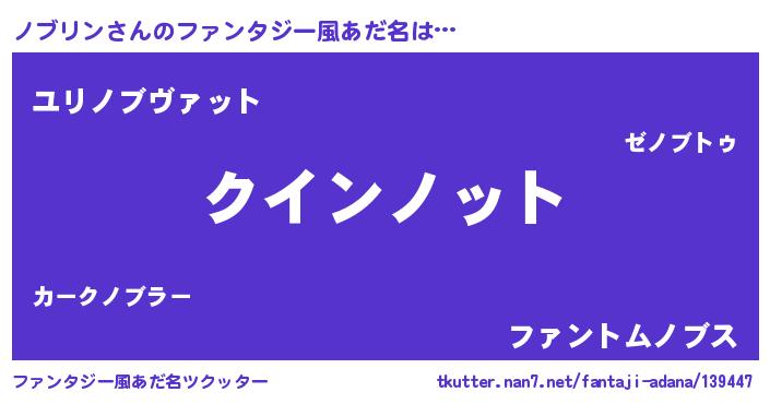 | 女子向けラノベタイトル風あだ名 | 『死神ノブリンの再婚』 |