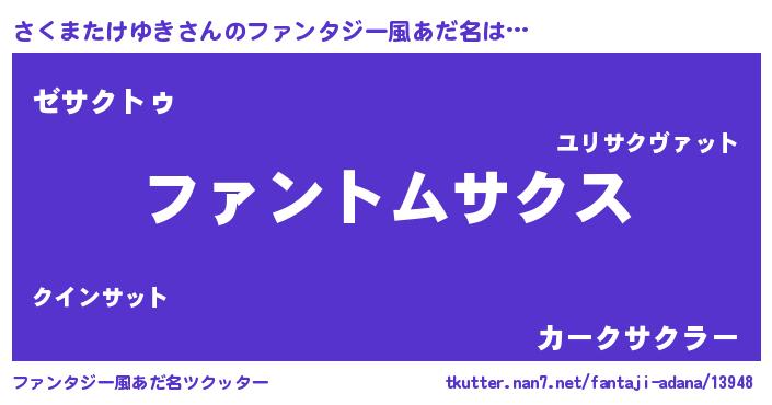 | ポケモン風あだ名 | 『ヒサクマタケユキ』『サクゴンZ』 |