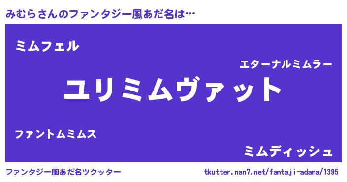 | 男性向けラノベタイトル風あだ名 | 『みむら~年齢イコール彼女いない歴の魔法使い~』 |