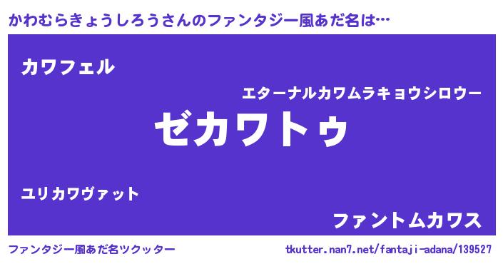 | 肩書あだ名 | 『かわむらきょうしろう閣下』 |
