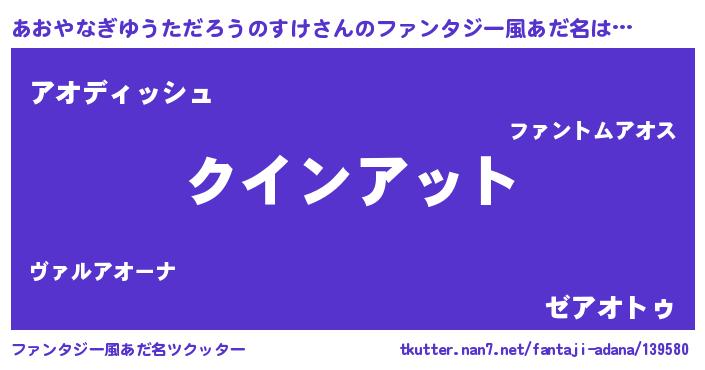 | 欧米人風あだ名 | 『アンジェラ・あおやなぎゆうただろうのすけ』 |