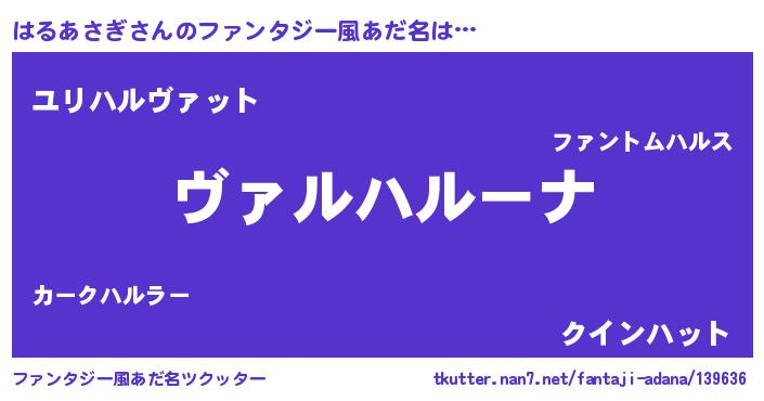 | 男性向けラノベタイトル風あだ名 | 『この素晴らしい世界にはるあさぎを!』 |