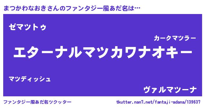 | 女子向けラノベタイトル風あだ名 | 『まつかわなおきの雑貨屋さん』 |